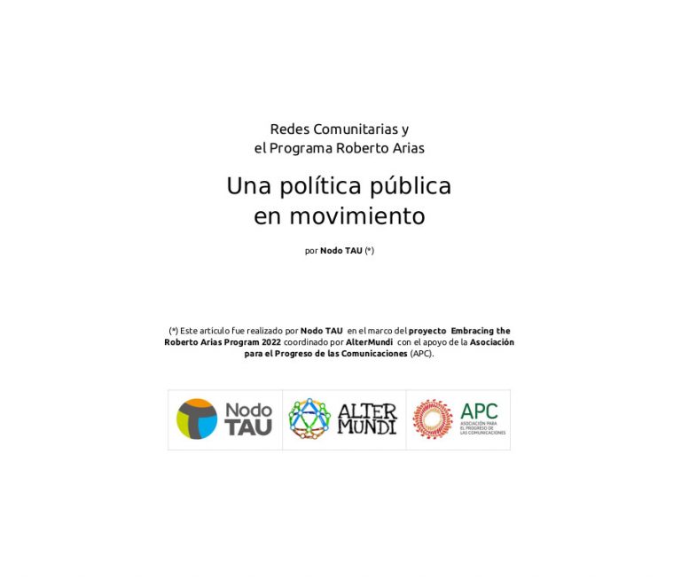 Artículo Redes Comunitarias y el Programa Roberto Arias. Una política pública en movimiento. (por Nodo TAU)