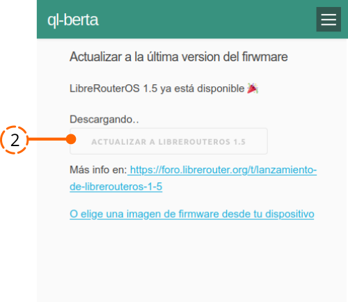 - Wait until the picture of the new firmware LibreRouter OS is already downloaded.