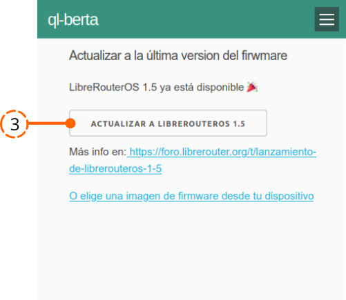 3. Click on the UPDATE TO LIBREROUTERS 1.5 button.