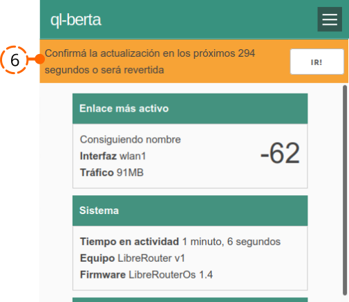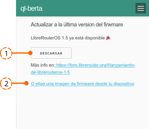This screen allows updating the firmware LibreRouter OS already installed in the equipment.