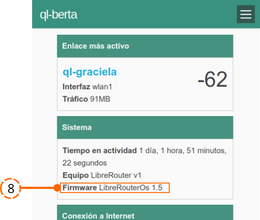 8. The firmware LIbreRouter is successfully upgraded.To verify this, go to the Status screen of the LimeApp. In the firmware version information, it should now say LibreRouterOS 1.5.